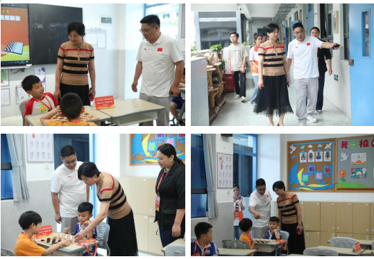 赛事期间,福田区美彩国际校长周元、副校长温胜权,汉国联体育俱乐部董事长徐俊等一行走进赛场教室,观摩学生比赛棋局,并了解赛事成绩。看到孩子们在棋盘前专注思考、从容应对挑战,这正是‘五育并举’教育理念的生动实践。
