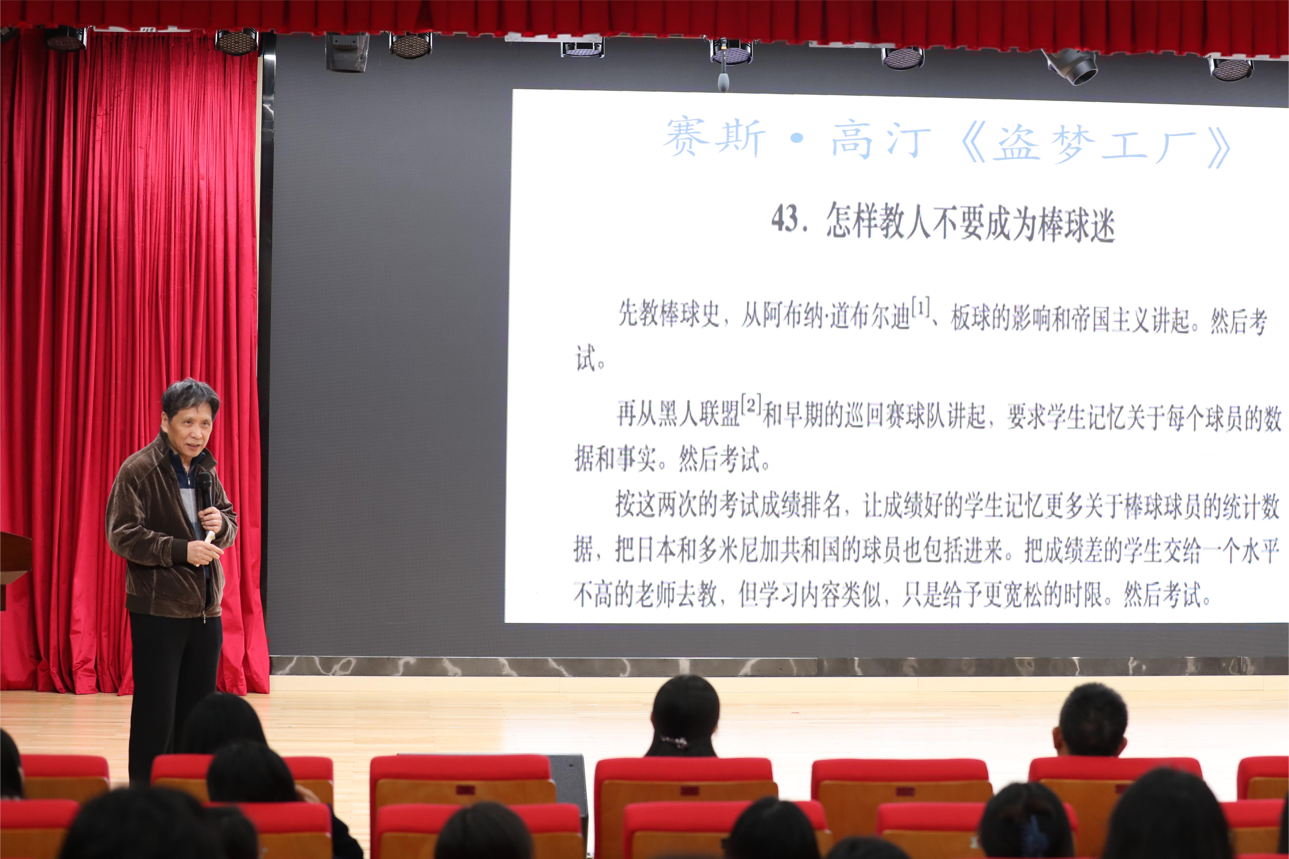 嵇院长以三首诗歌引入讲座的主题—穿越教育海洋中的确定性岛屿,紧接着聚焦当下教育的问题,针对学生的心理健康和人工智能对于教育的影响阐述了自己的看法。嵇院长分享道:“学习是生活中最有趣和最伟大的游戏。所有的孩子生来这样认为,并且将继续这样认为。”嵇院长以语文科目为例,介绍了国外先进的教学案例和方法,带给了教师们许多思考和反思。