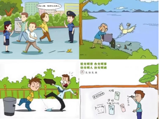 不乱扔垃圾、不乱倒污⽔、不随地吐痰,不乱贴乱画。