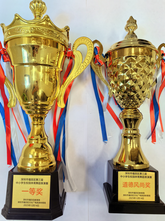 2025年12月14日,深圳市福田区第三届中小学生校园体育舞蹈联赛在红岭教育集团高中部隆重举行。本次比赛吸引了来自全区19个代表队近400名队员参加,我校共20名学生参赛,通过比赛培养了孩子们的自信和艺术气质,增加了团队合作精神,提高了集体荣誉感。经过激烈而紧张的一天比赛我校荣获小学规定动作组一等奖和体育道德风尚奖。